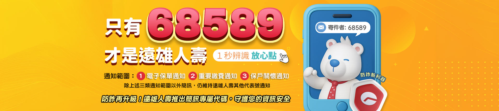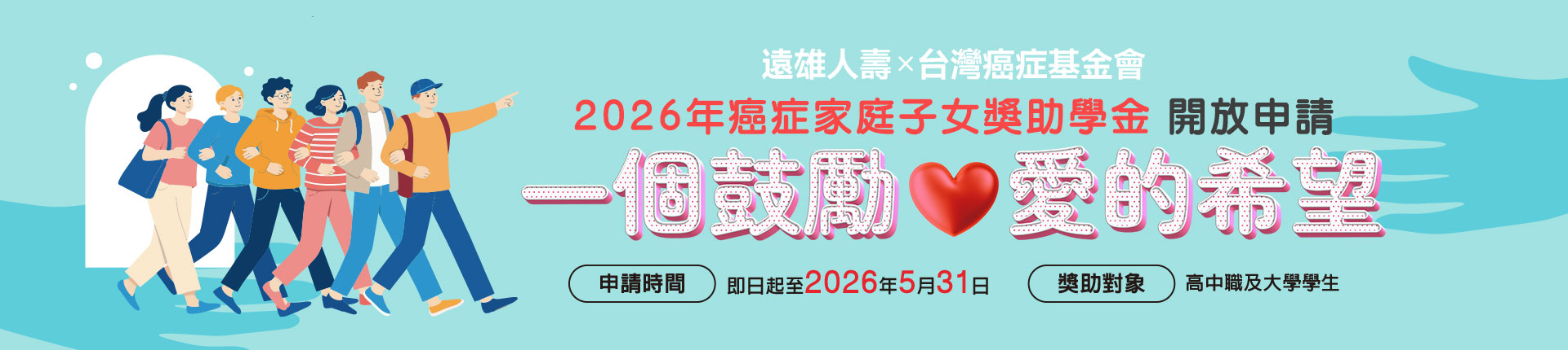 2026.04.27 NEW連續16年暖心守護 遠雄人壽癌症家庭子女獎助學金 開放申請2026.04.21 NEW醫療通膨衝擊退休防護網 遠雄人壽建議善用轉換型醫療險 提前佈局老後醫療保障2026.04.17 NEW齊心應援世新女籃決戰小巨蛋!遠雄人壽深化「運動推手」承諾 挹注獎助學金與職涯培育 助青年學子安心逐夢2026.04.16 NEW115年 4月 18日(六) 00:00起至07:00止,暫停網站、電子保單及APP各項服務公告2026.04.15 NEW115年4月18日(六)00:00~07:00,ATM保單借款作業暫停服務公告。瞭解更多 -